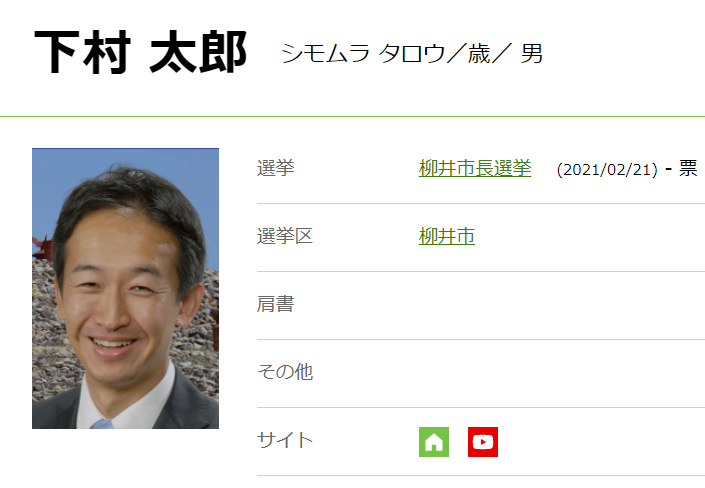 下村氏は柳井市出身、中央大学法学部政治学科卒業。2007年から2020年まで大和証券株式会社本社に勤務しました。現在は柳井志位ふるさと観光大使、中央大学学員会(OB・OG会)辞達クラブ支部理事を務めています。