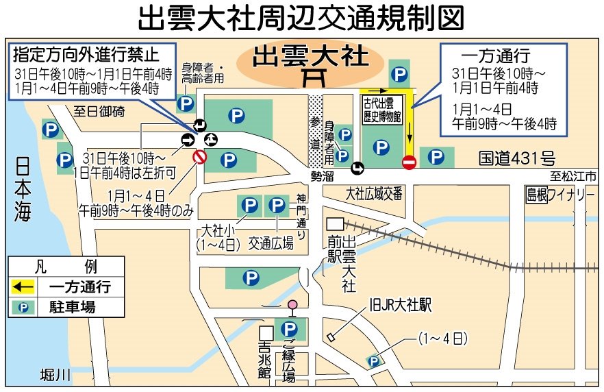 【交通情報】出雲大社、太皷谷稲成神社(津和野)周辺 年末年始の交通規制、31日から | 山陰中央新報デジタル